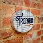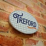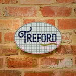 Opaque glass mosaic house sign.