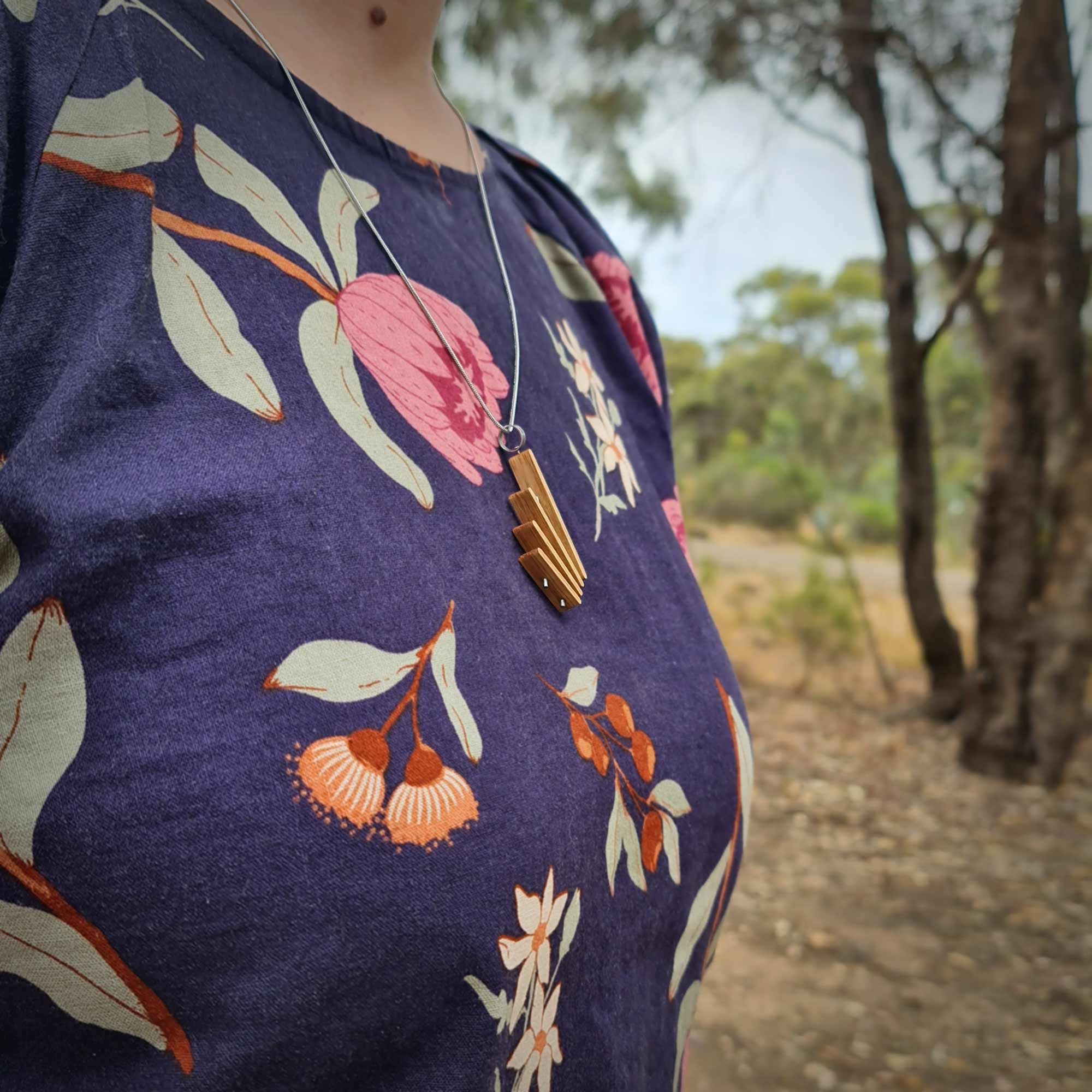 The name is a slight misnomer. The Half Shelby is well over half the size of a full Shelby pendant, but it is smaller, simpler, and a little bolder in form. A versatile geometric wood necklace showcasing the warm muted tones of Australian hardwood.