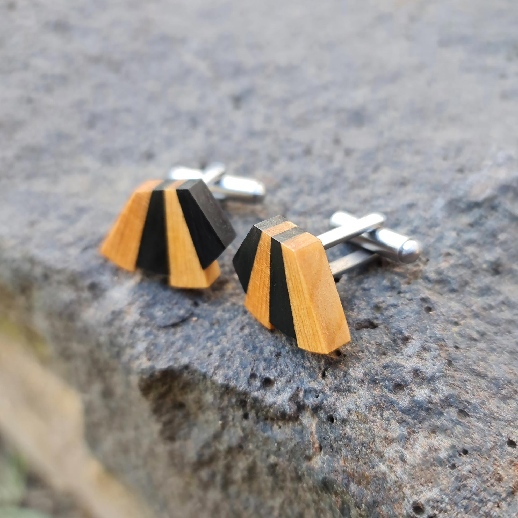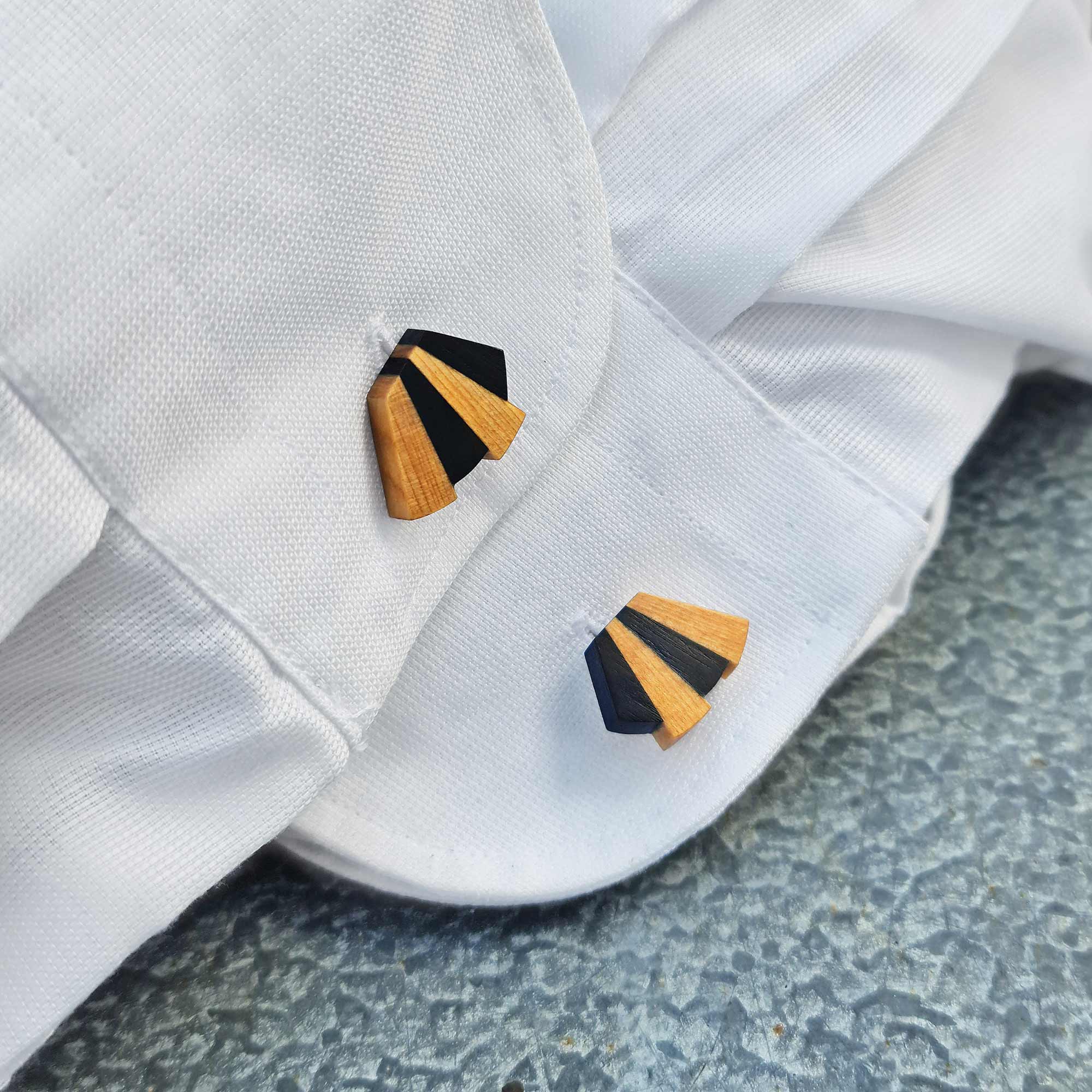 With a striking radiating design loosely based on a piano keyboard, these Pianista cufflinks are handmade using recycled wood from an old piano. I only source unplayable pianos that are otherwise destined for landfill, dismantle and reuse the fabulous timbers.