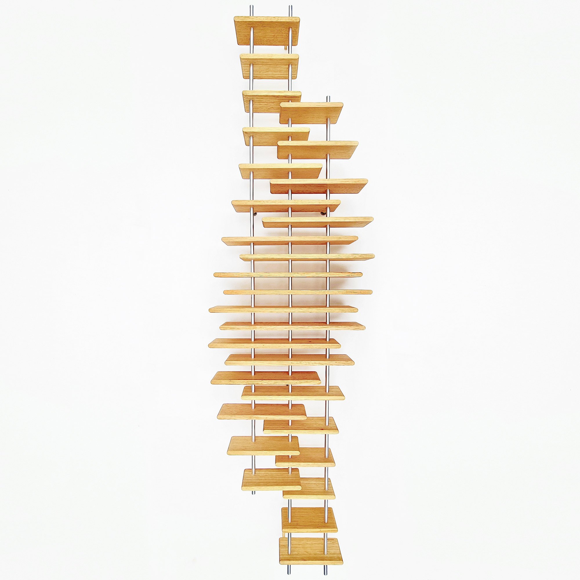 'Stereo' depicts the joining of two separate yet like-minded entities. Each following their own unique paths (curves expressed with relief from the wall), meeting, blending together and becoming a cohesive unit.